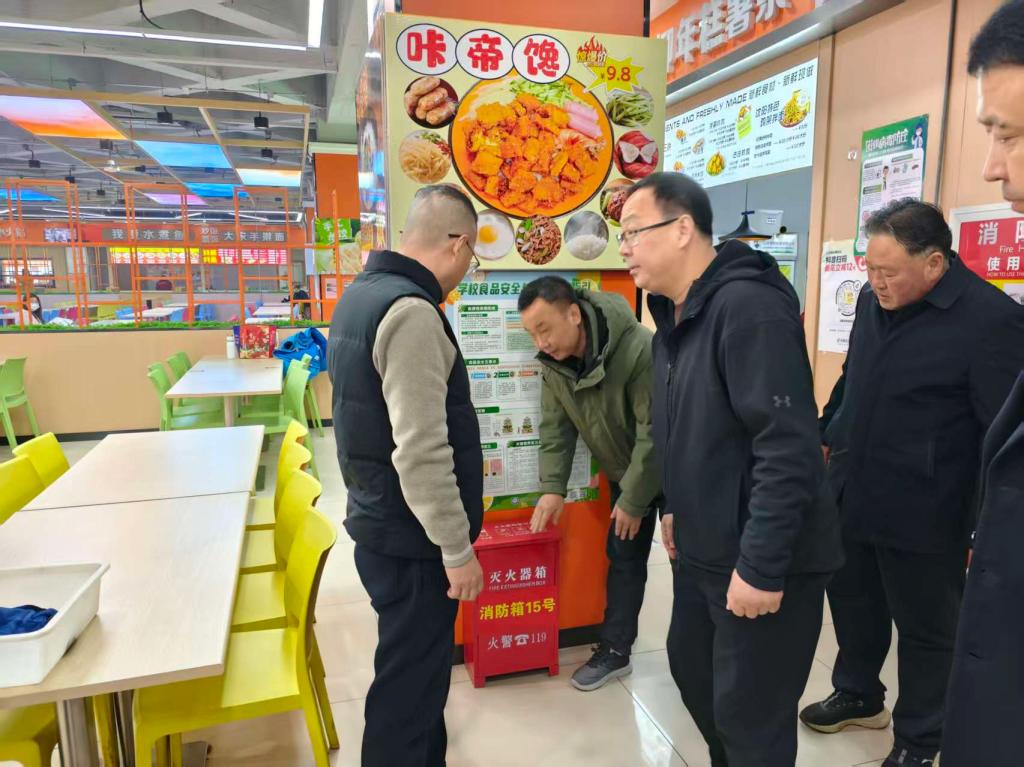 在学生宿舍,检查组重点检查宿舍用电安全、消防设施配备、疏散通道畅通情况,叮嘱工作人员加强日常巡查与安全教育,及时消除违规用电、杂物堵塞通道等隐患。在配电间与校园充电桩区域,详细核查电力设备运行、线路规范、充电设施安全防护等情况,要求严格落实设备维护制度,严防电气安全事故发生。在食堂,围绕食材采购储存、加工制作、餐具消毒、食品留样等关键环节开展检查,强调严守食品安全底线,保障师生饮食健康。针对外卖递送点与非机动车停放区,重点查看秩序管理、环境整洁及安全防护措施,要求优化管理流程,落实网格区域责任,规范停放秩序,消除安全盲区。